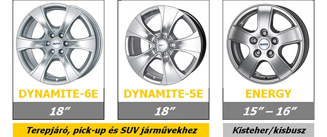 Robusztus, nagyobb igénybevételre és terhelésre tervezett könnyűfém keréktárcsák a népszerű terepjáró, SUV, kisbusz és kisteherautó alkalmazásokhoz. A DYNAMITE típus kivitele osztókör függő!